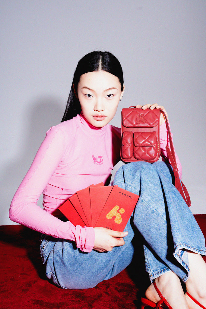 As you may know, Chinese people like Poker, Ma-Jiang and money. : ) The inspiration of this bag comes from Chinese red envelope(LEE-SEI) which can put lucky money inside during Chinese new year festival. It is a way to reunite with our friends and families to get happiness. In the worldwide recession period, we wish this special LEE-SEI CROSS BODY BAG brings you, our worldwide friends, good luck and happiness. ——Karkki design team